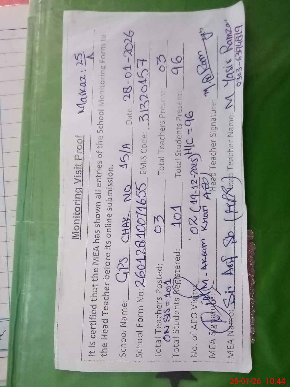 | EMIS Code: 31320157 | Name of School: GPS CHAK 15/A | |||