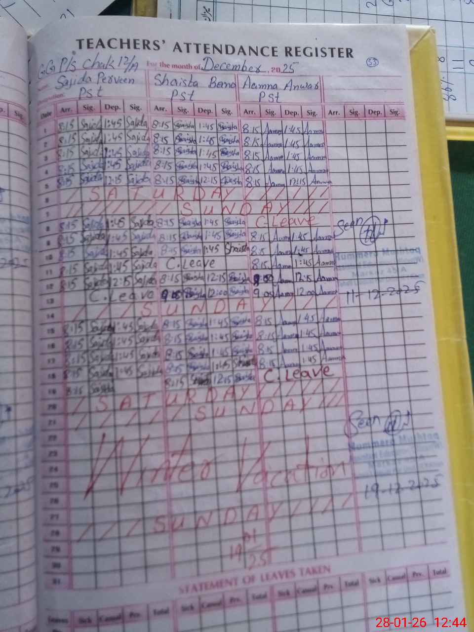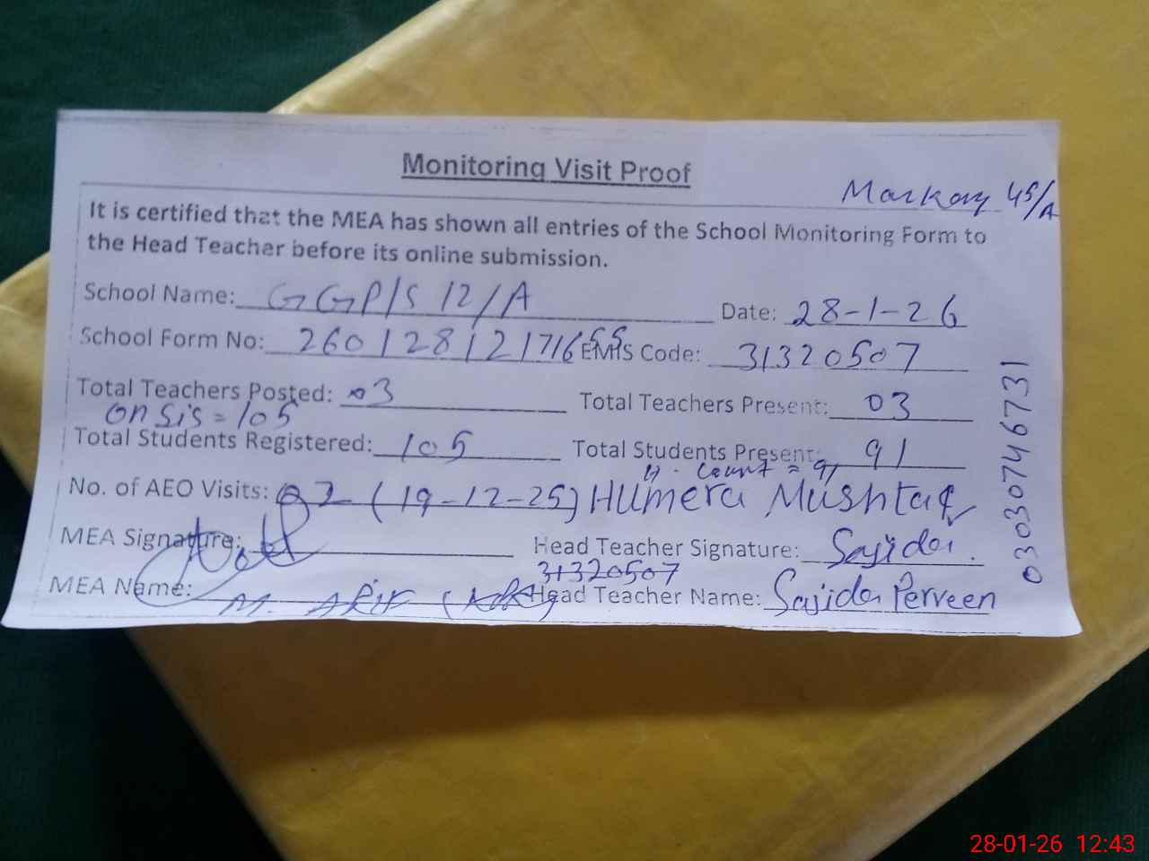 | EMIS Code: 31320507 | Name of School: GGPS CHAK NO.12/A | |||