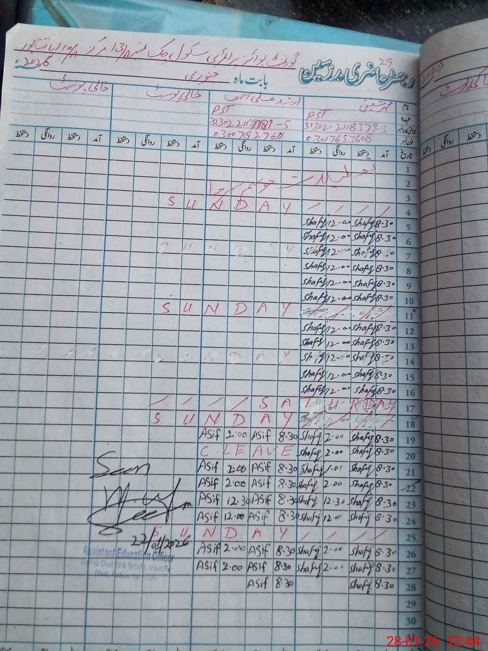 | Name: Mu**** Sh**** Designation: (School Headmaster's/Headmistress's) PST/PTC/JV Phone/Cell Number: 03**** |