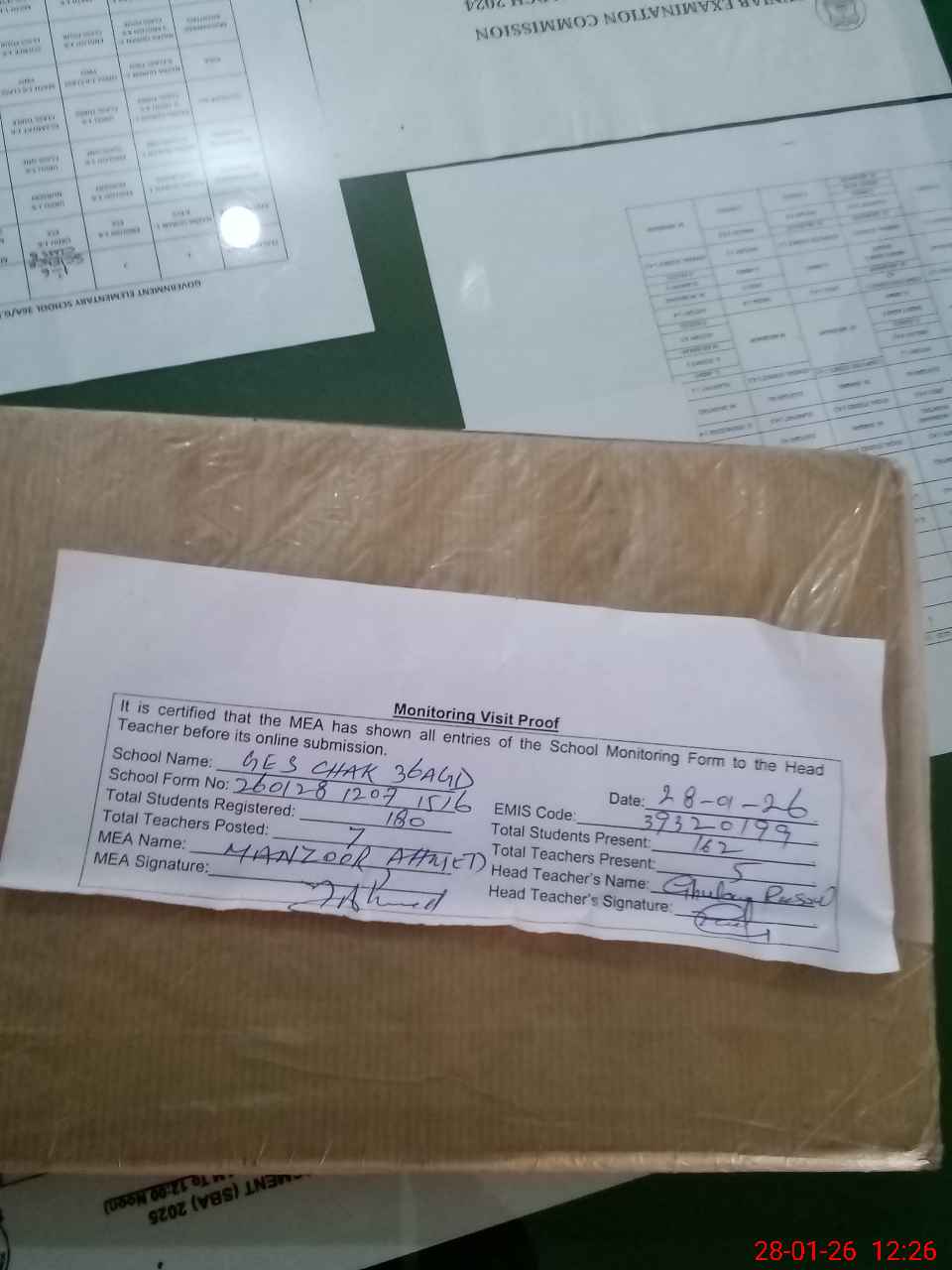 | Attendance Register | Head Teacher | MEA with School | Visit Proof |