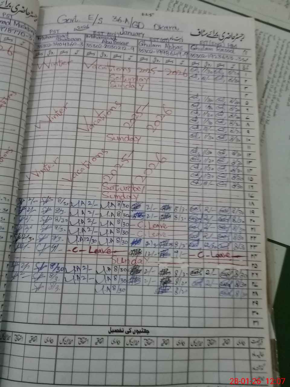 | CNIC | Full Name | Designation | R/C | Absence During Last Calender Month |