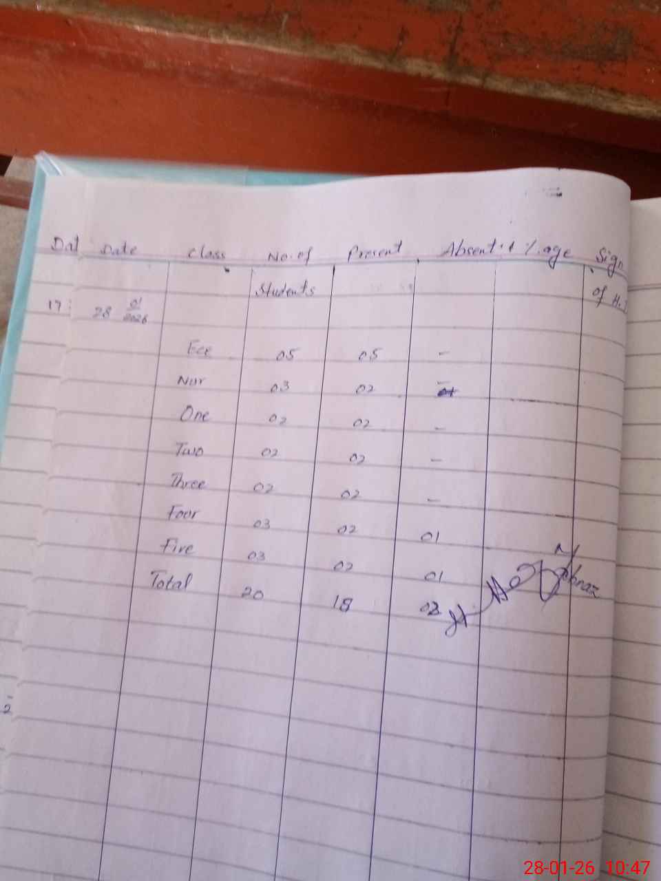 | Total Students Present | 0 | 5 | 2 | 2 | 2 | 2 | 2 | 18 | ||||||||