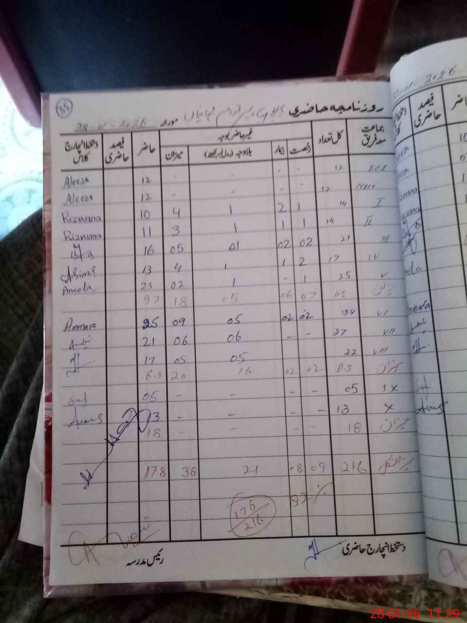 | Total Students Present | 0 | 12 | 10 | 11 | 16 | 13 | 23 | 25 | 21 | 17 | 5 | 13 | 178 | |||