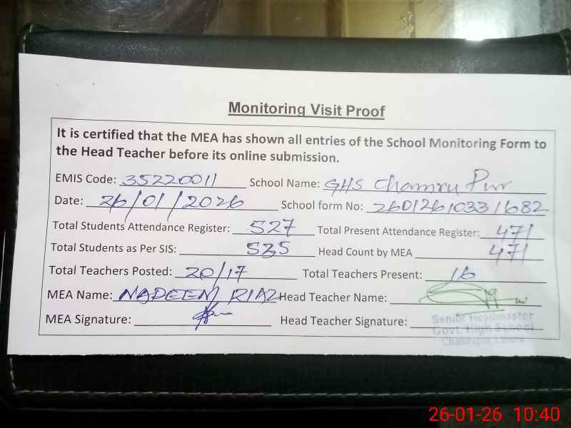 | EMIS Code: 35220011 | Name of School: GHS CHAMRU PUR | |||