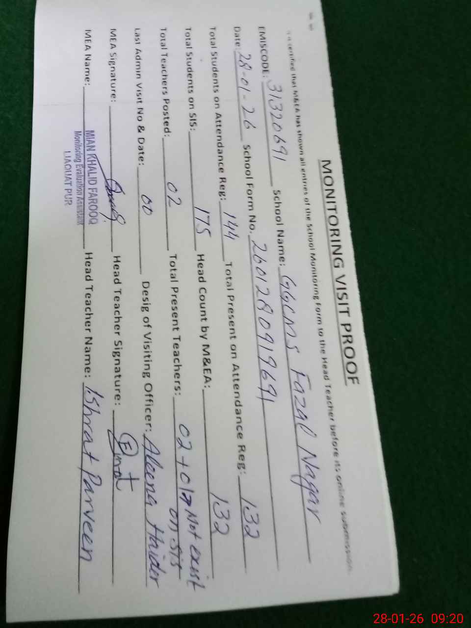 | EMIS Code: 31320691 | Name of School: GGCMS FAZAL NAGAR | |||