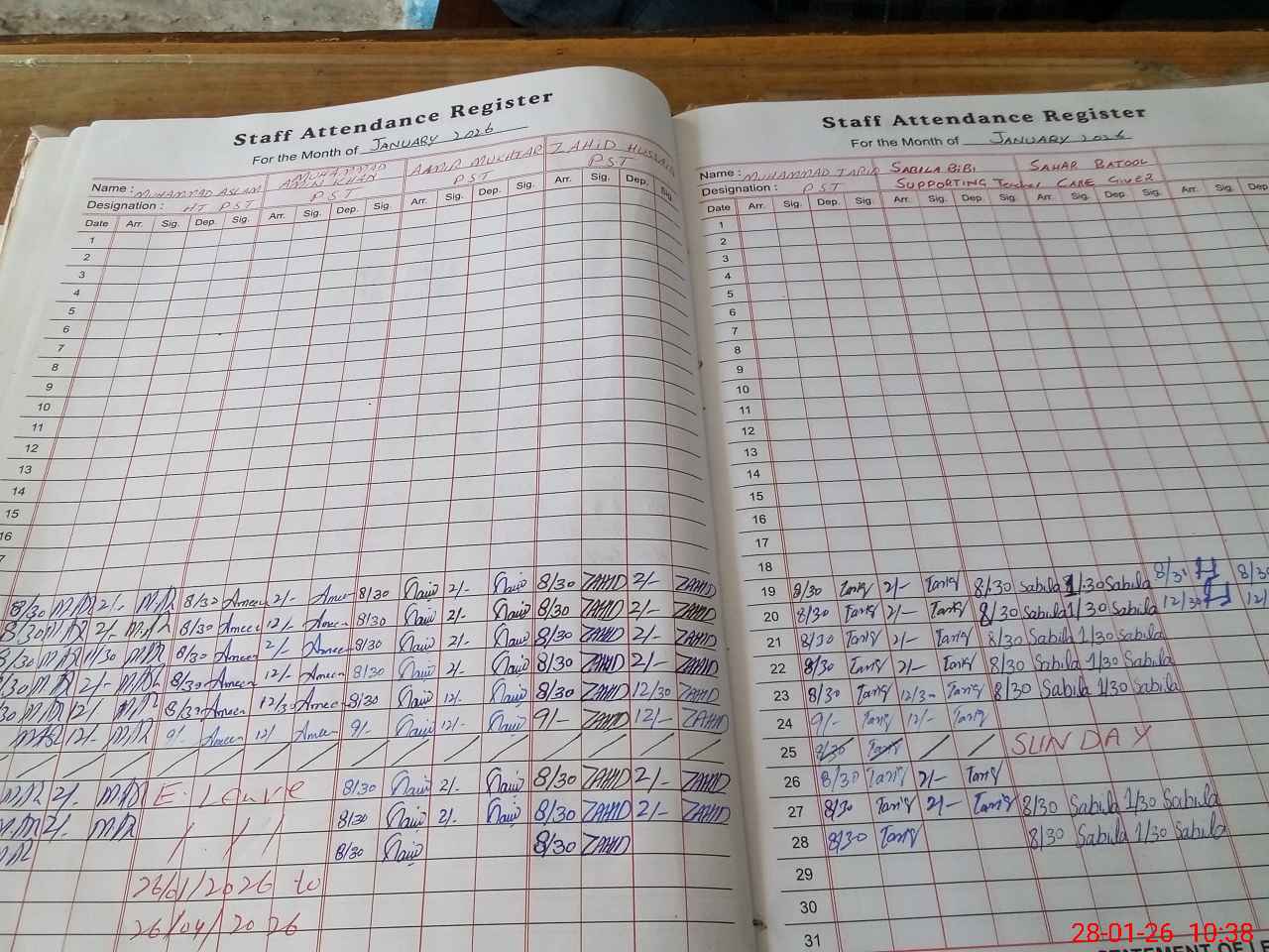 | CNIC | Full Name | Designation | R/C | Absence During Last Calender Month |