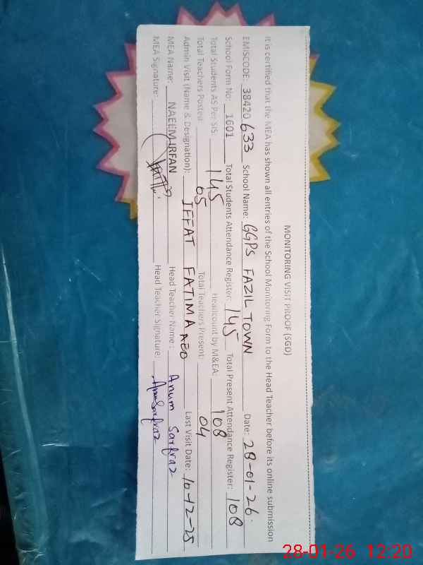 | EMIS Code: 38420633 | Name of School: GGPS FAZIL TOWN | |||