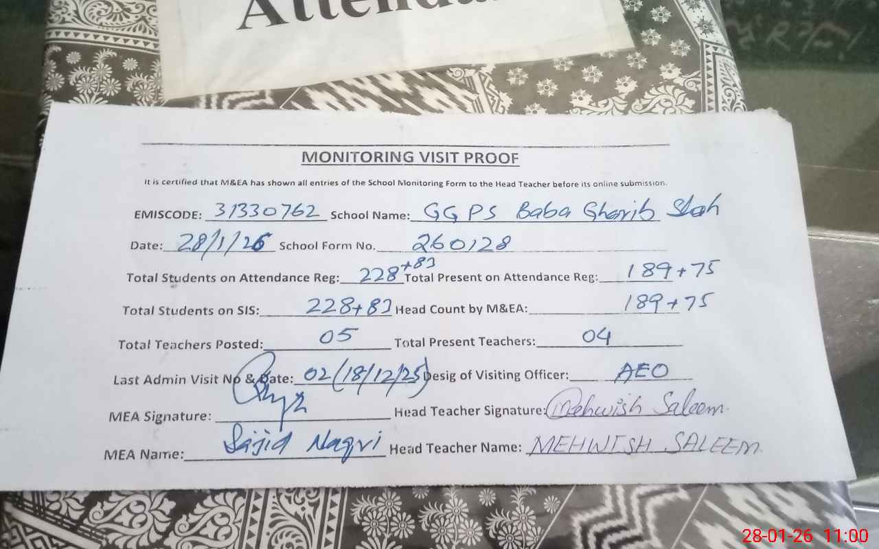 | Attendance Register | Head Teacher | MEA with School | Visit Proof |