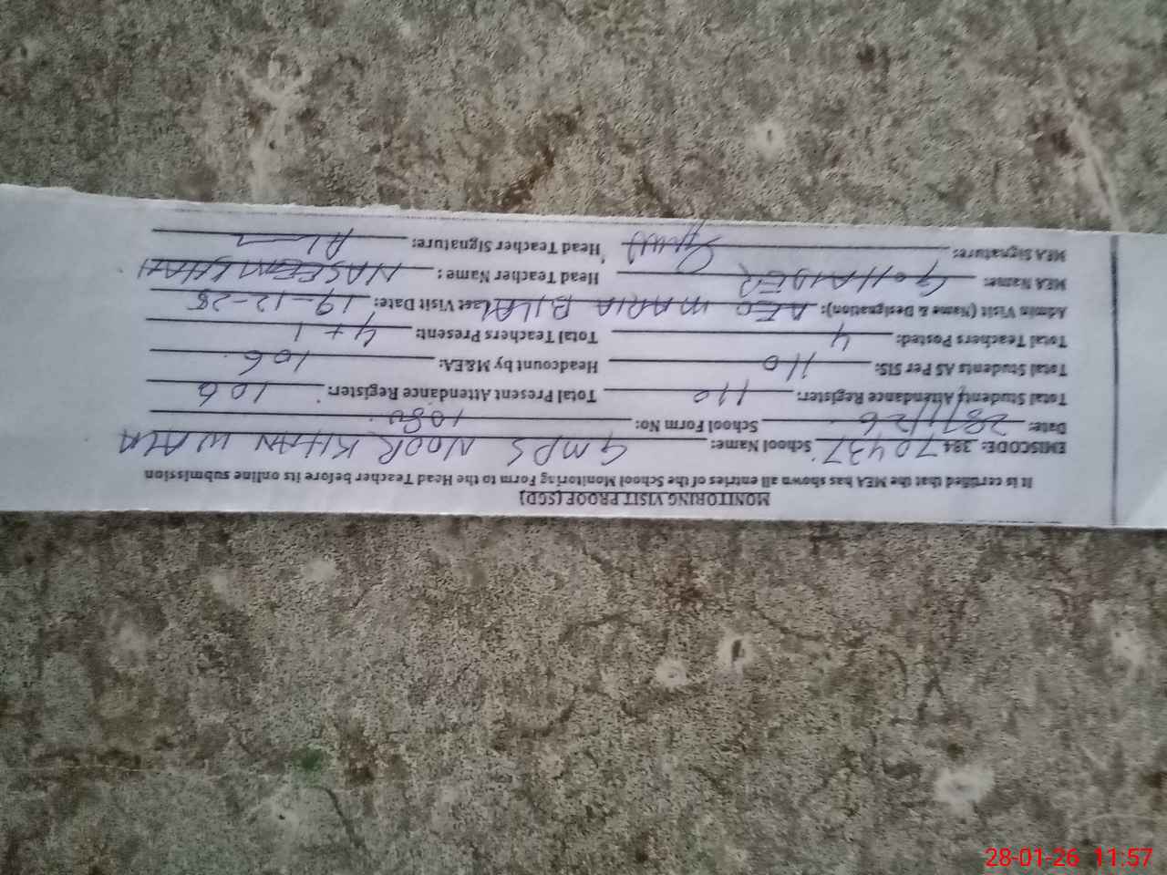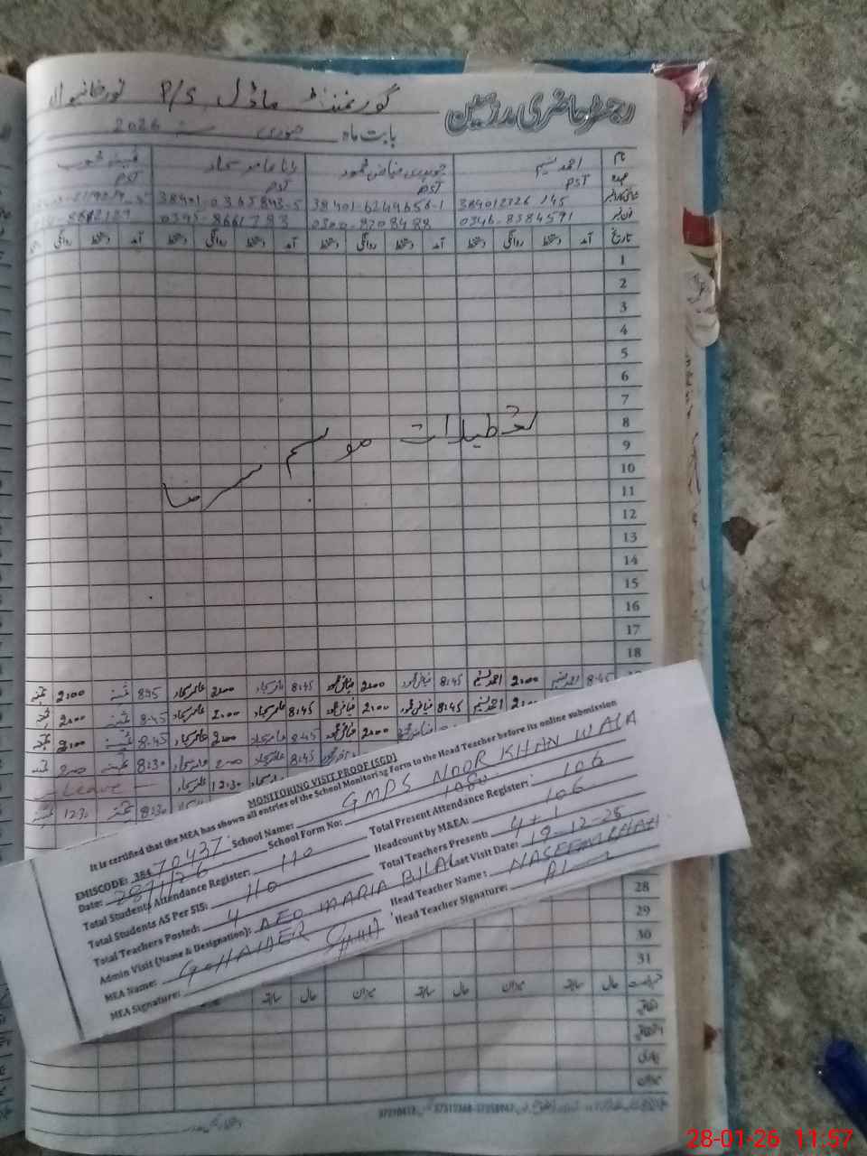 | EMIS Code: 38470437 | Name of School: GMPS NOOR KHAN-E-WALA | |||