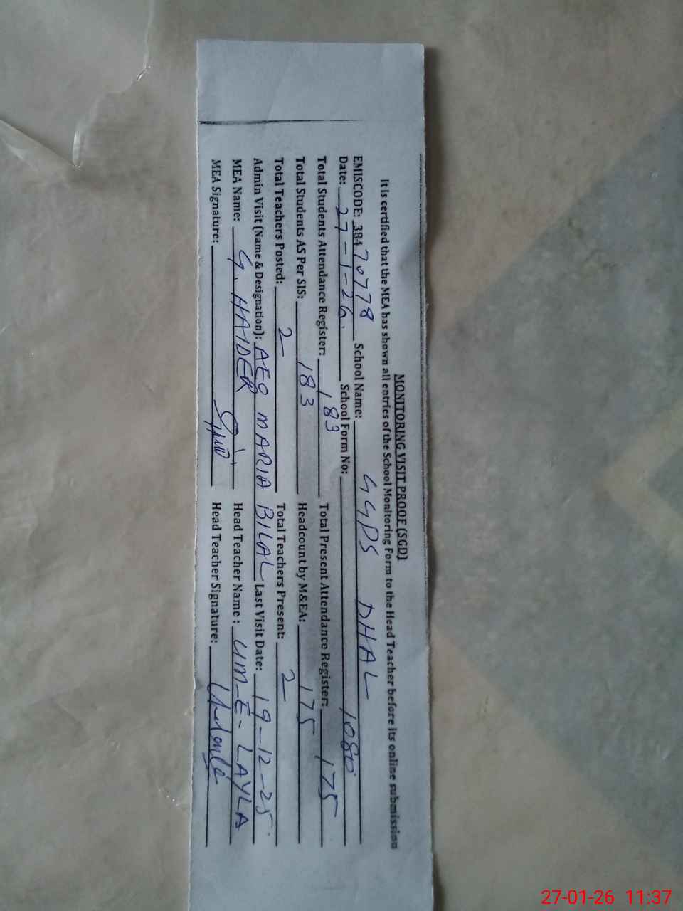 | EMIS Code: 38470778 | Name of School: GGPS DHAL | |||