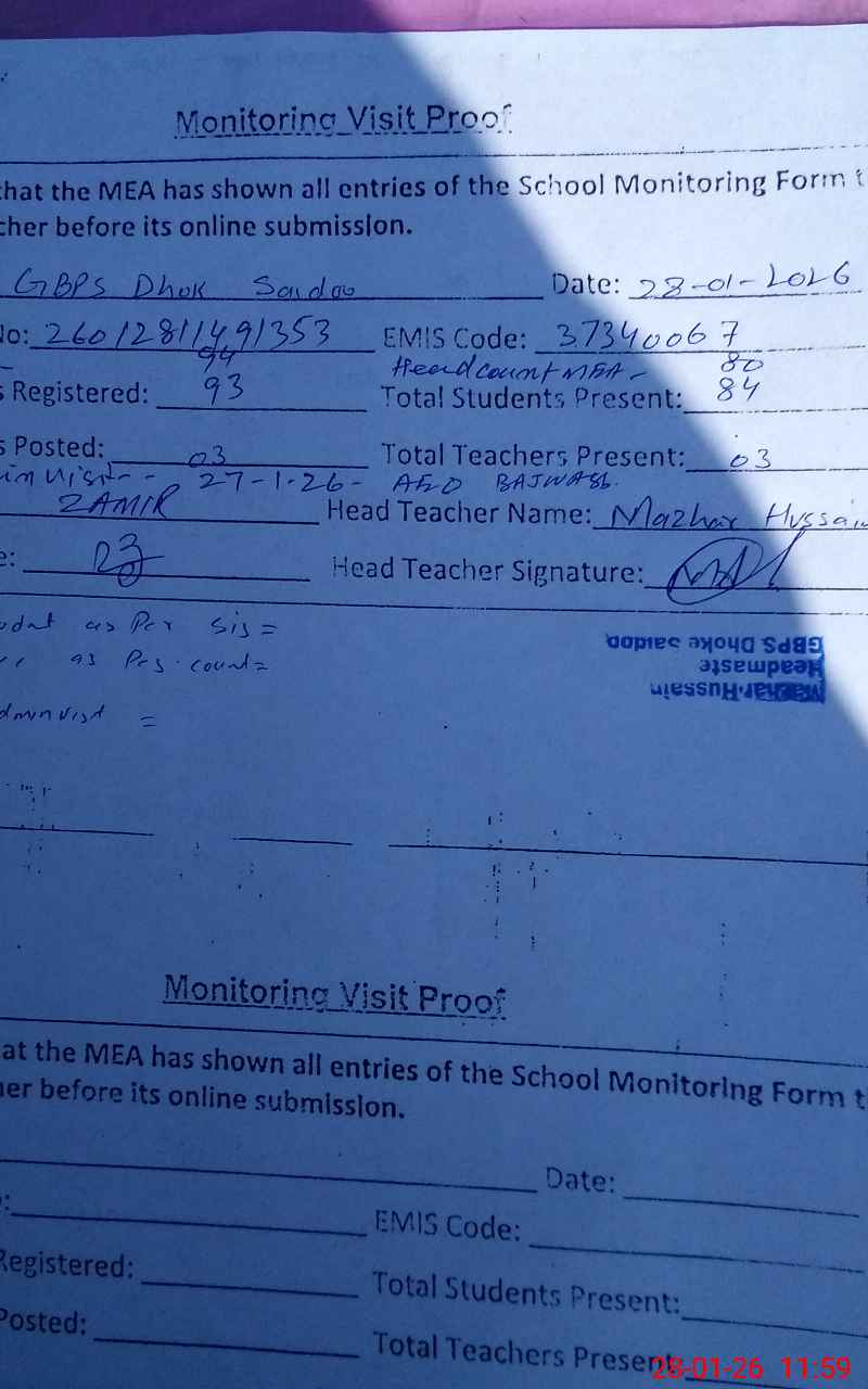 | Attendance Register | Head Teacher | MEA with School | Visit Proof |