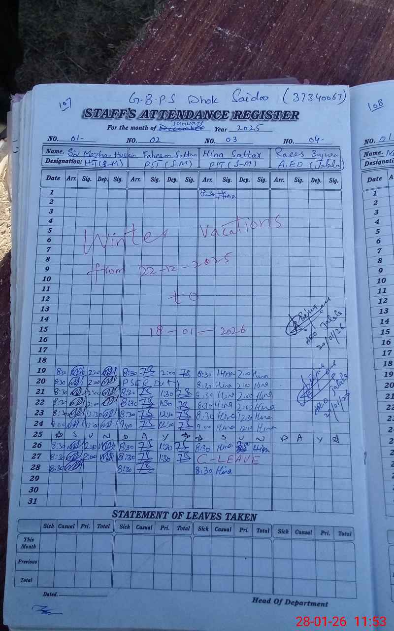 | EMIS Code: 37340067 | Name of School: GPS DHOKE SAIDOO | |||