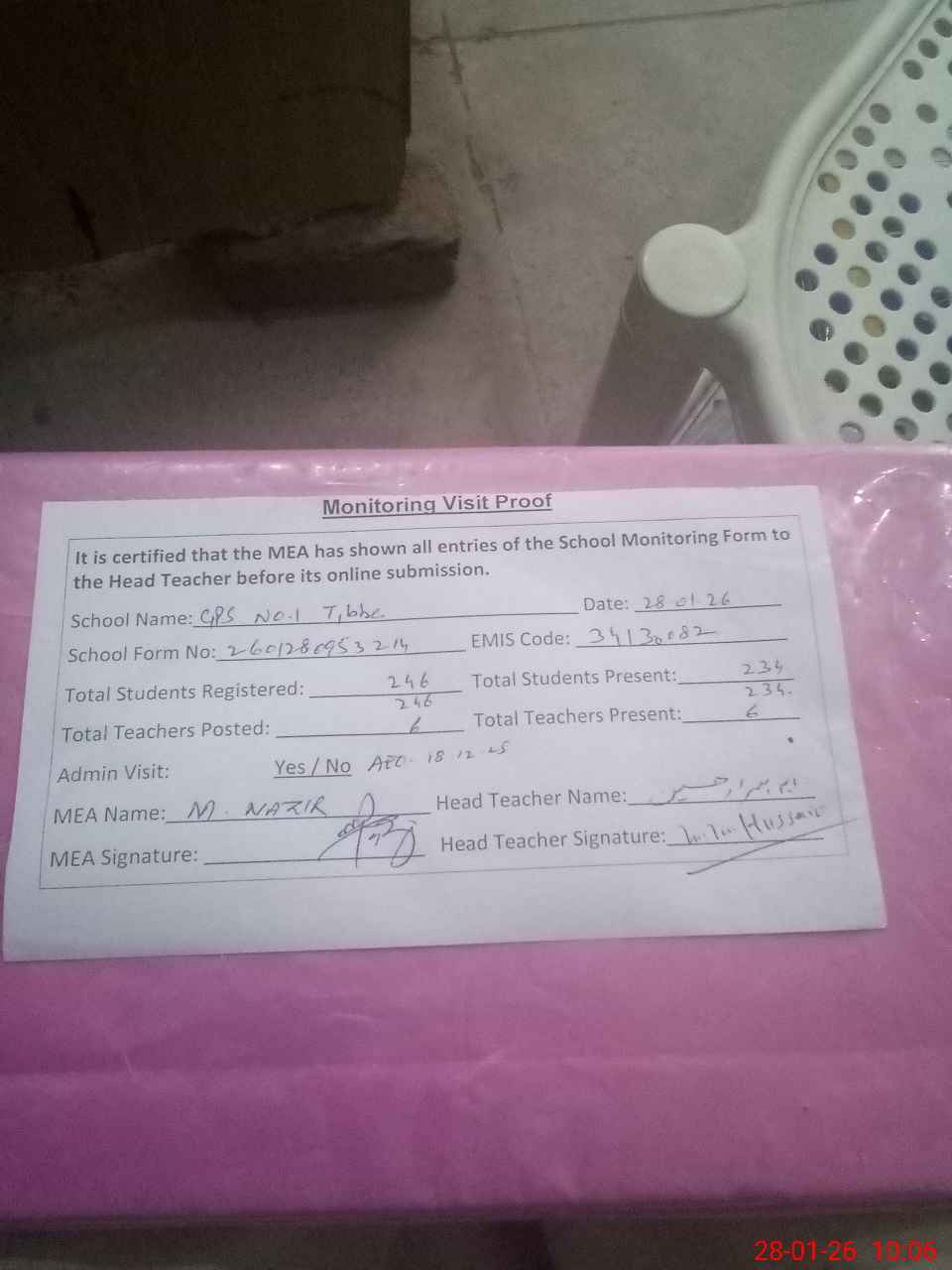 | EMIS Code: 34130082 | Name of School: GPS TIBBA MUHAMMAD NAGAR NO.1 | |||