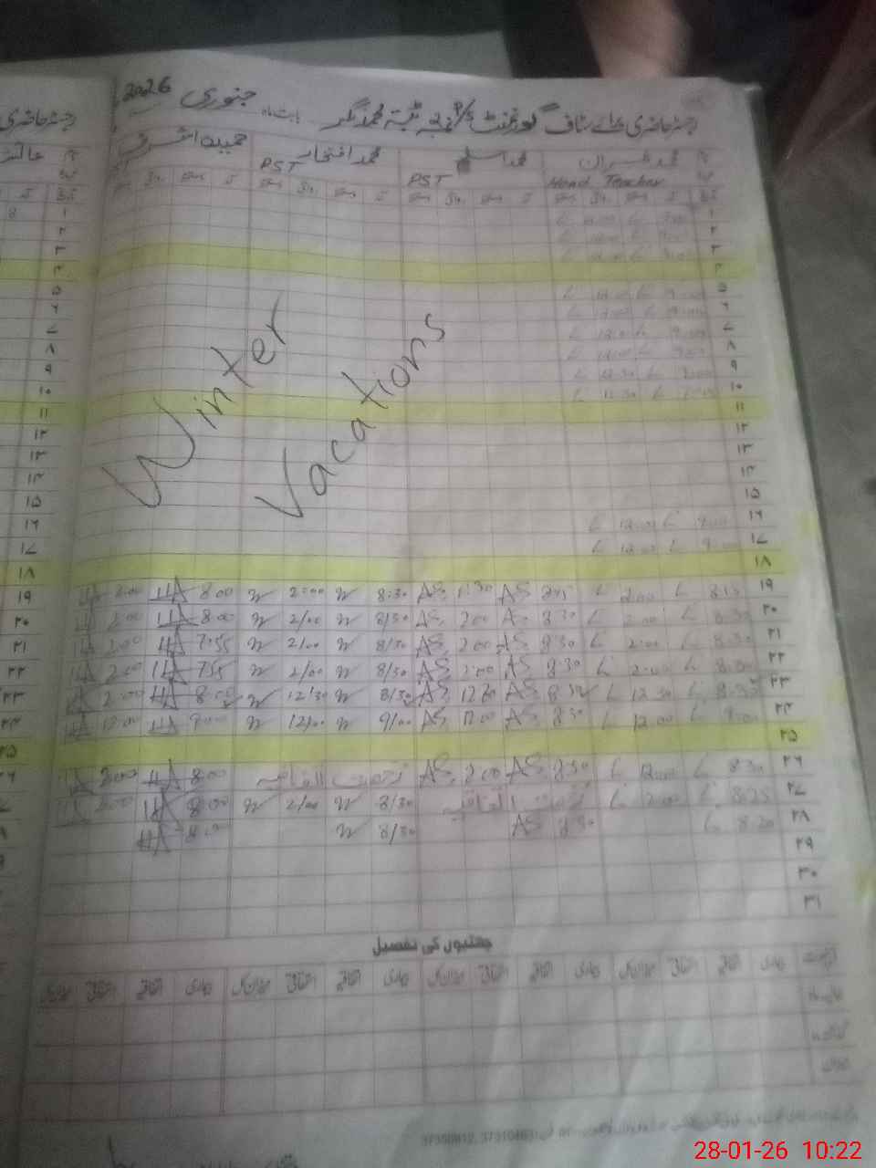 | CNIC | Full Name | Designation | R/C | Absence During Last Calender Month |