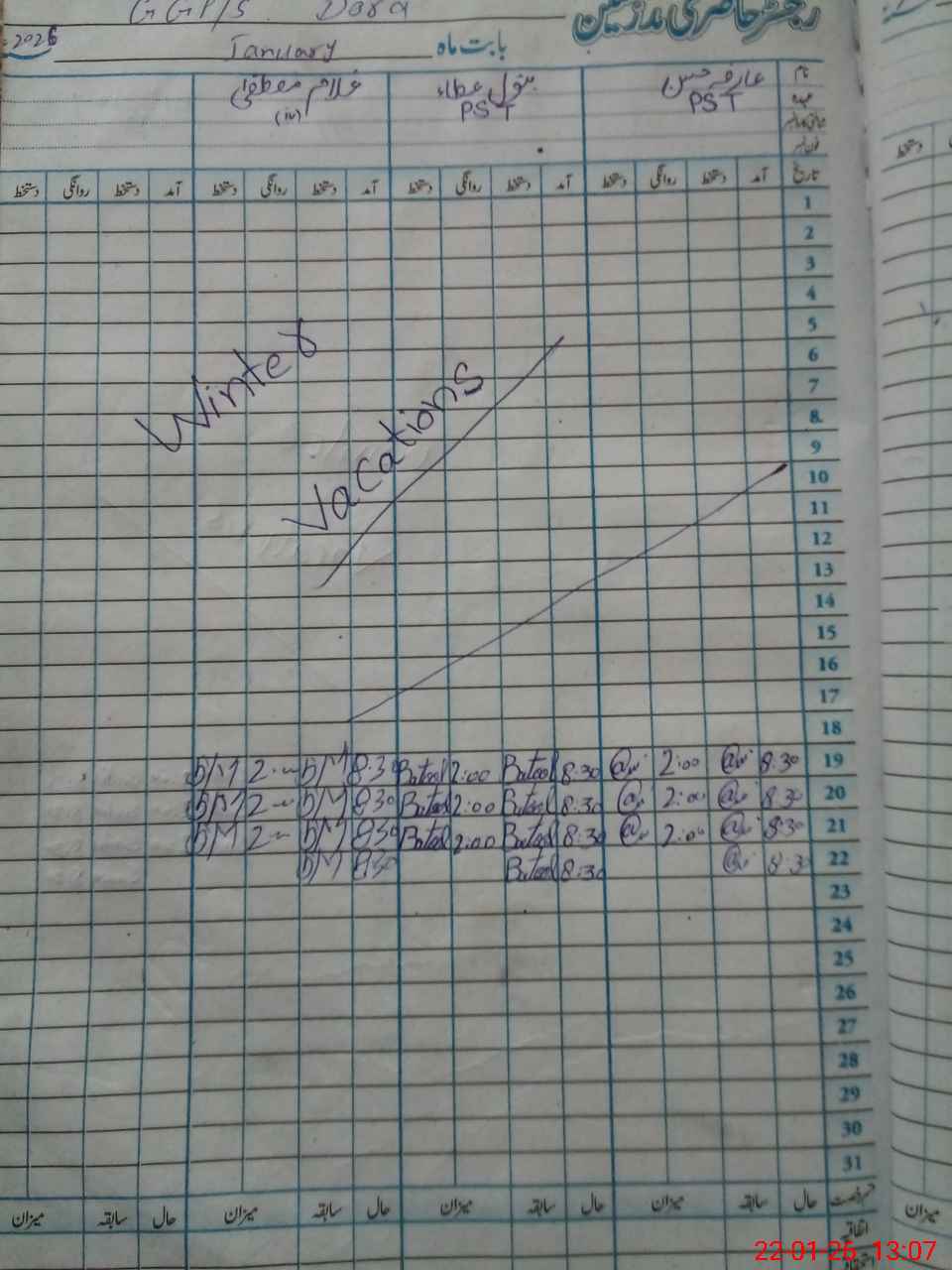 | CNIC | Full Name | Designation | R/C | Absence During Last Calender Month |