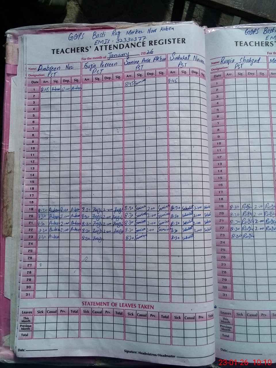 | 32**** | Us**** Za**** | CLASS IV | Regular | 0 | 0 | 0 | 0 | 0 | 0 | 0 | 0 | 0 | Absent (Un-Authorized) |