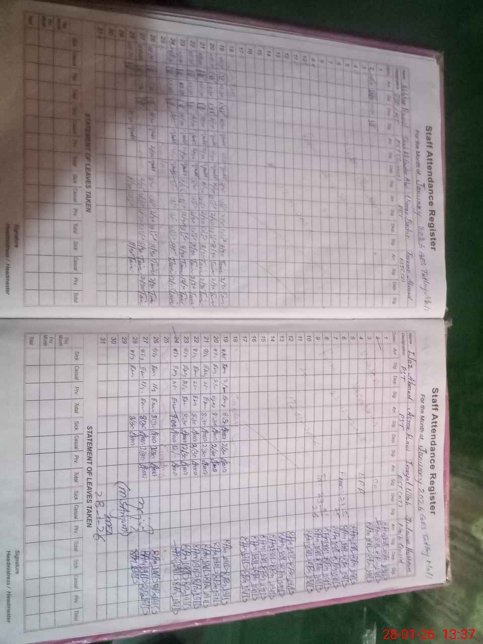 | Attendance Register | Head Teacher | MEA with School | Visit Proof |