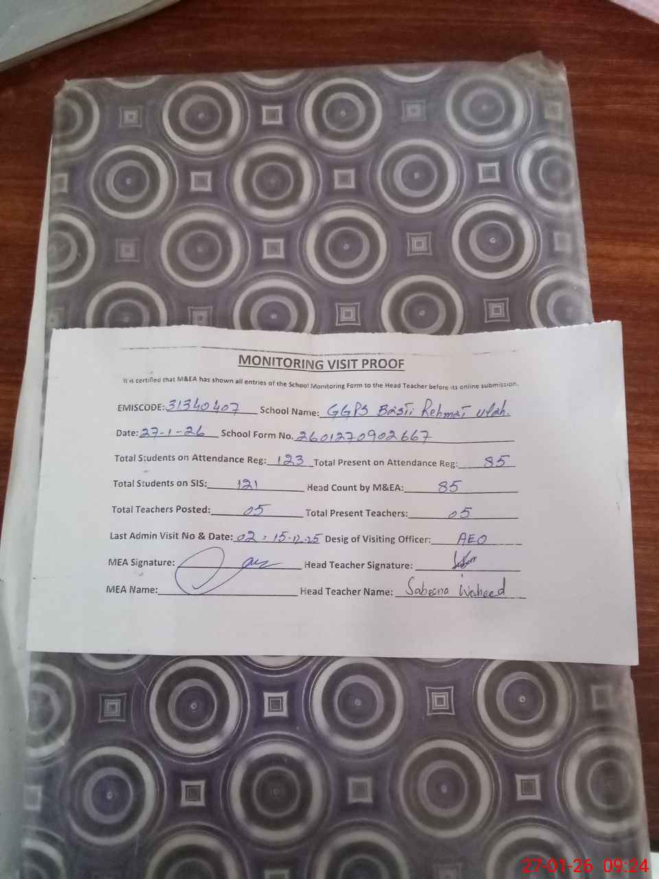 | EMIS Code: 31340407 | Name of School: GGPS BASTI REHMAT ULAH | |||