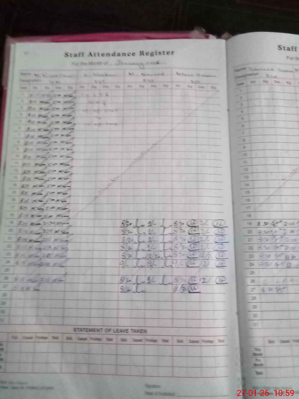 | No. of Students Present - Female | 0 | 0 | 0 | 0 | 0 | 0 | 0 | 0 | 0 | 0 | 5 | |||||