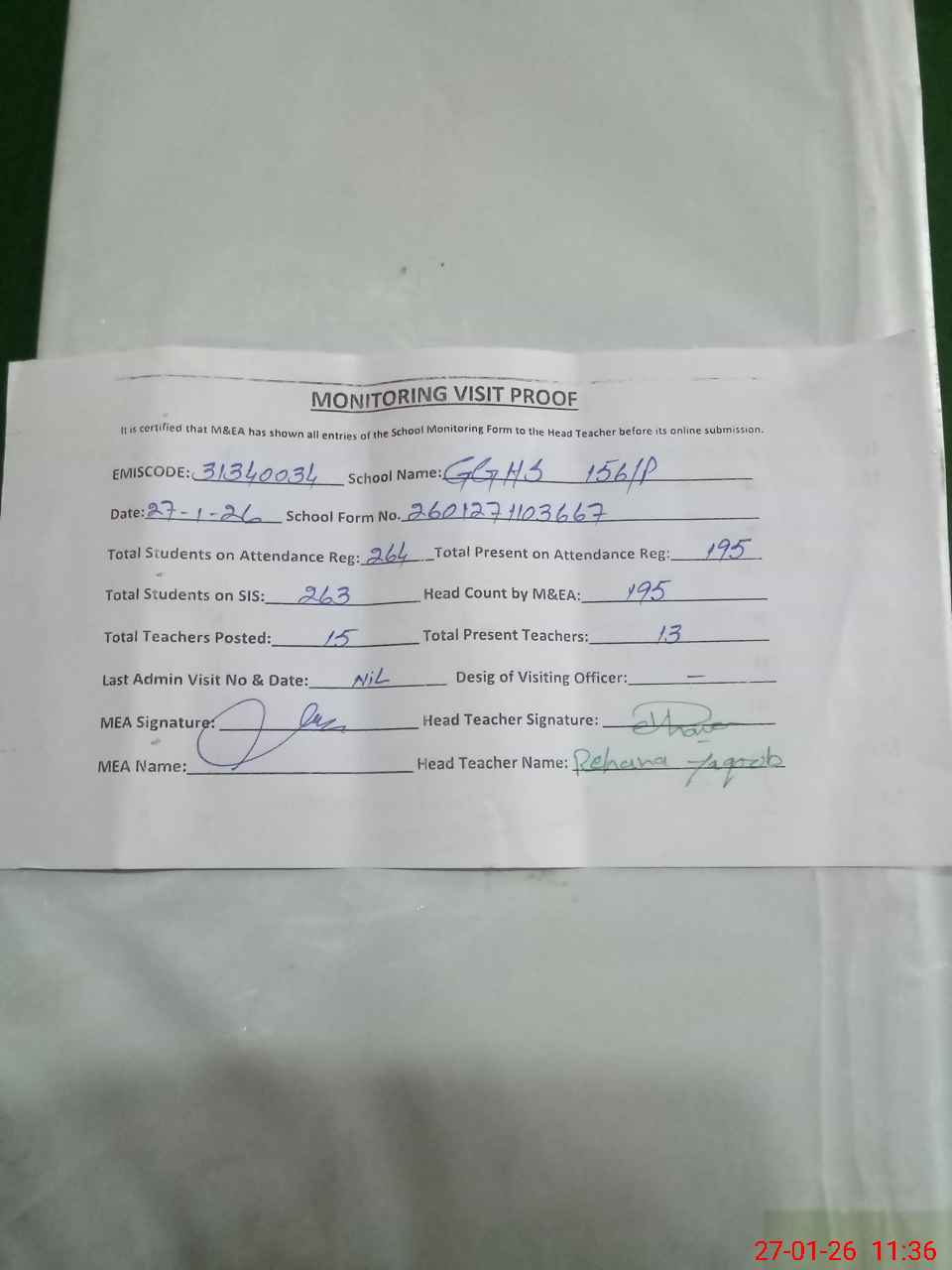 | EMIS Code: 31340034 | Name of School: GGHS CHAK NO. 156/P | |||