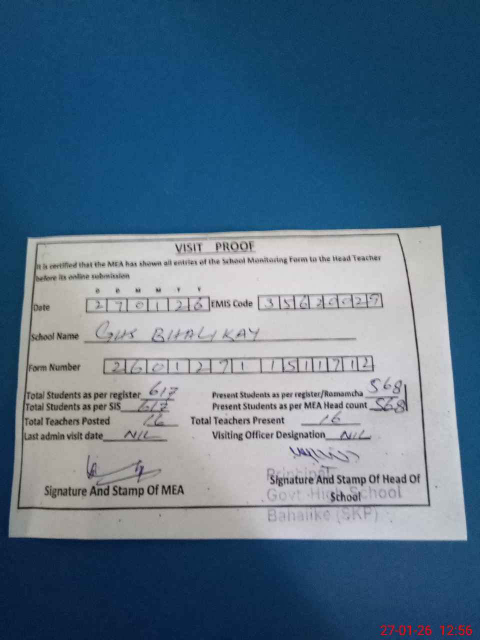 | EMIS Code: 35620029 | Name of School: GHS BHALIKAY | |||