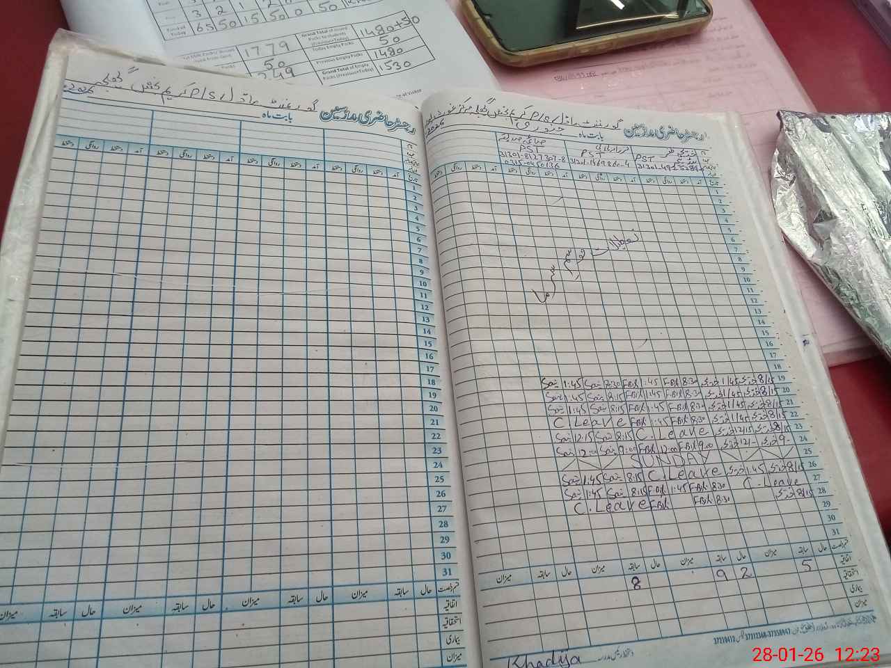| CNIC | Full Name | Designation | R/C | Absence During Last Calender Month |