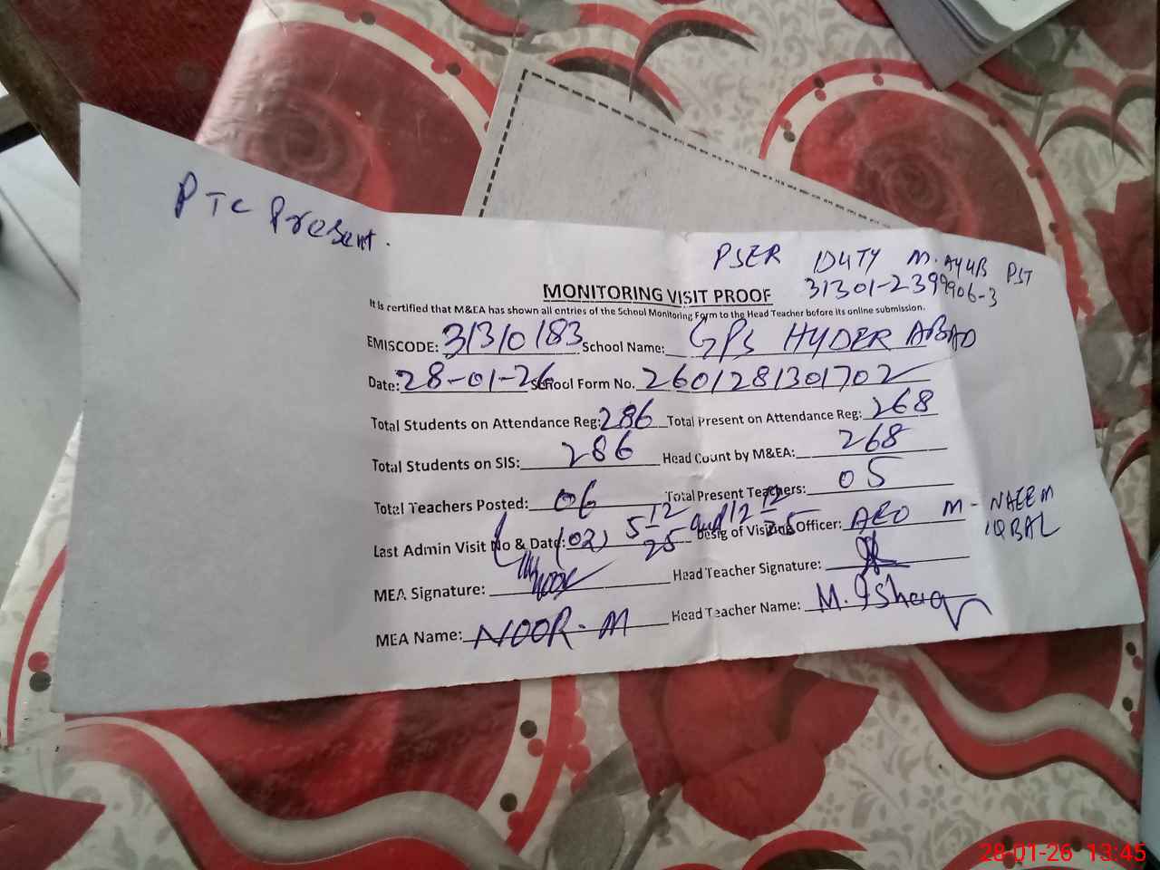 | EMIS Code: 31310183 | Name of School: GPS HYDERABAD | |||