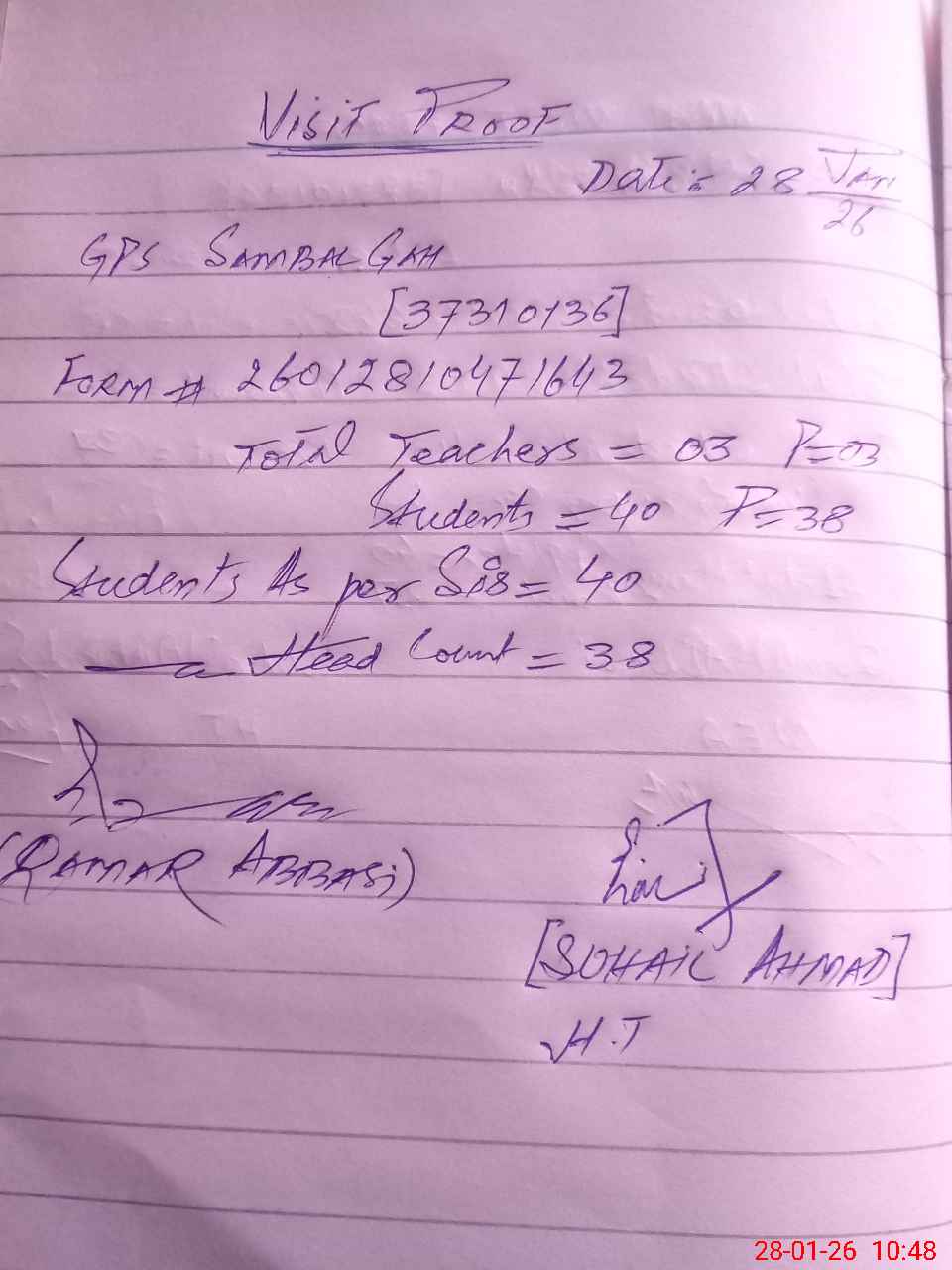 | EMIS Code: 37310136 | Name of School: GPS SUMBAL GAH | |||