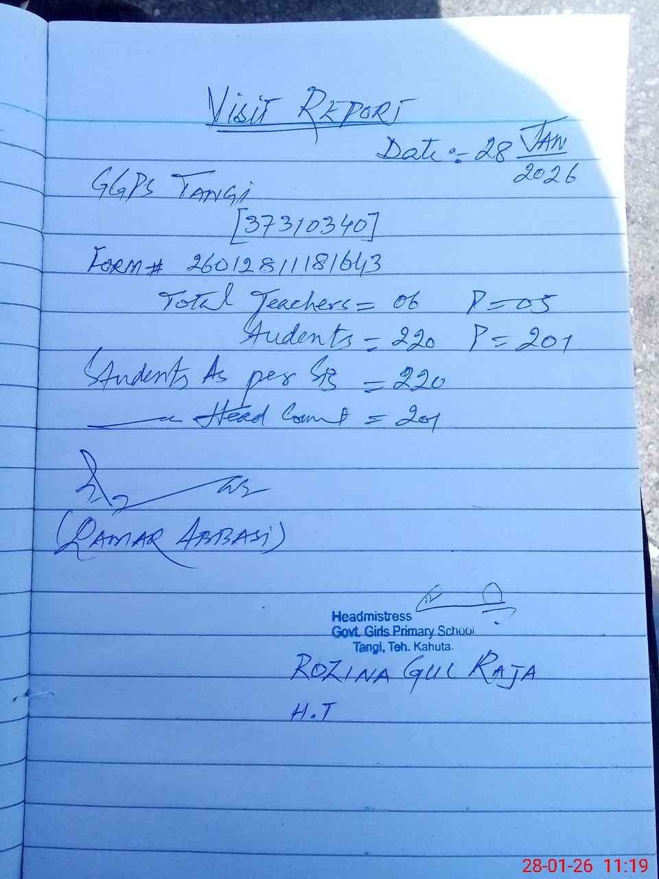 | Attendance Register | Head Teacher | MEA with School | Visit Proof |