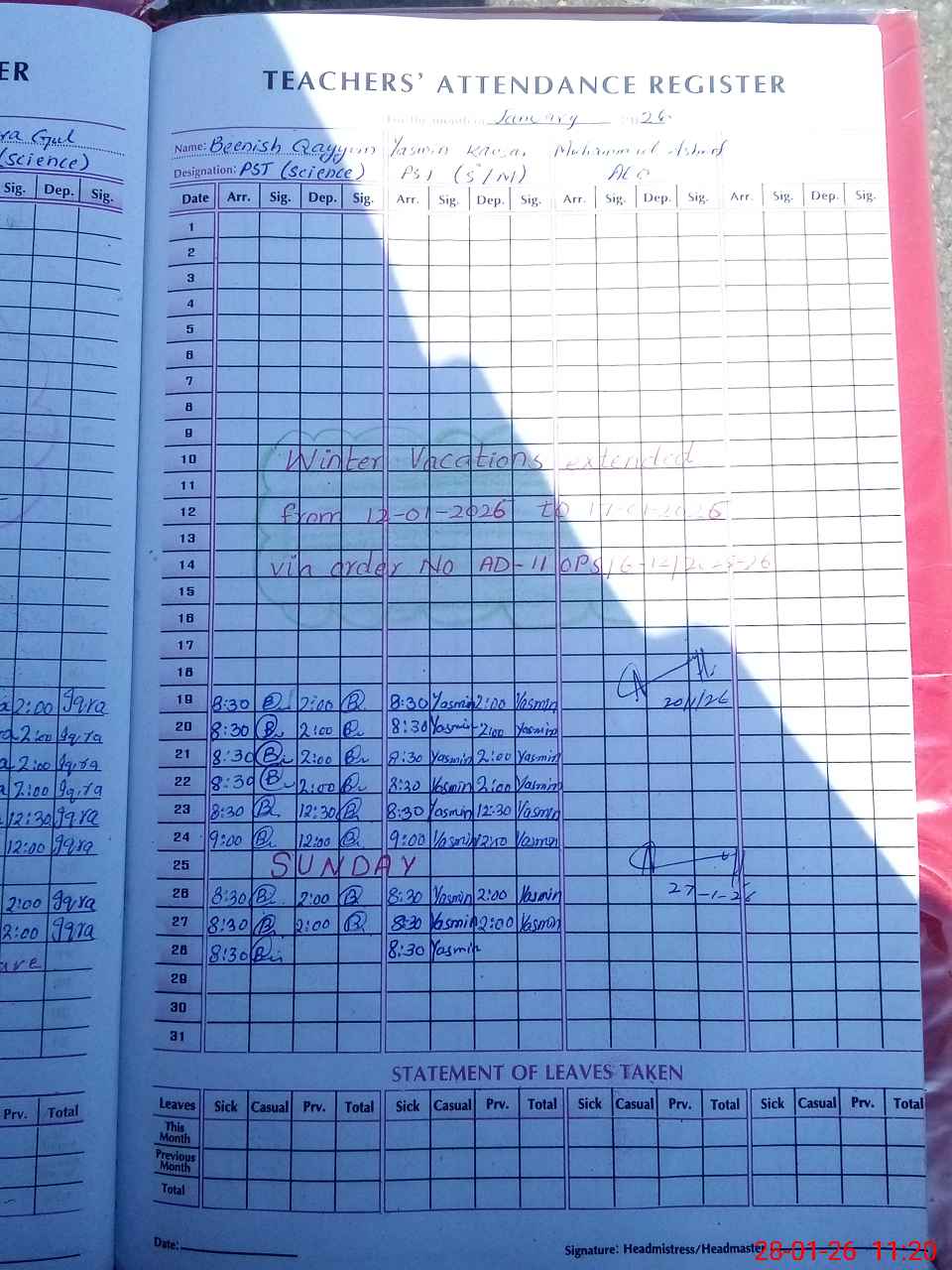 | 37**** | Iq**** Gu**** | PST Science/Maths | Regular | 0 | 0 | 0 | 0 | 0 | 0 | 0 | 0 | 0 | Maternity |