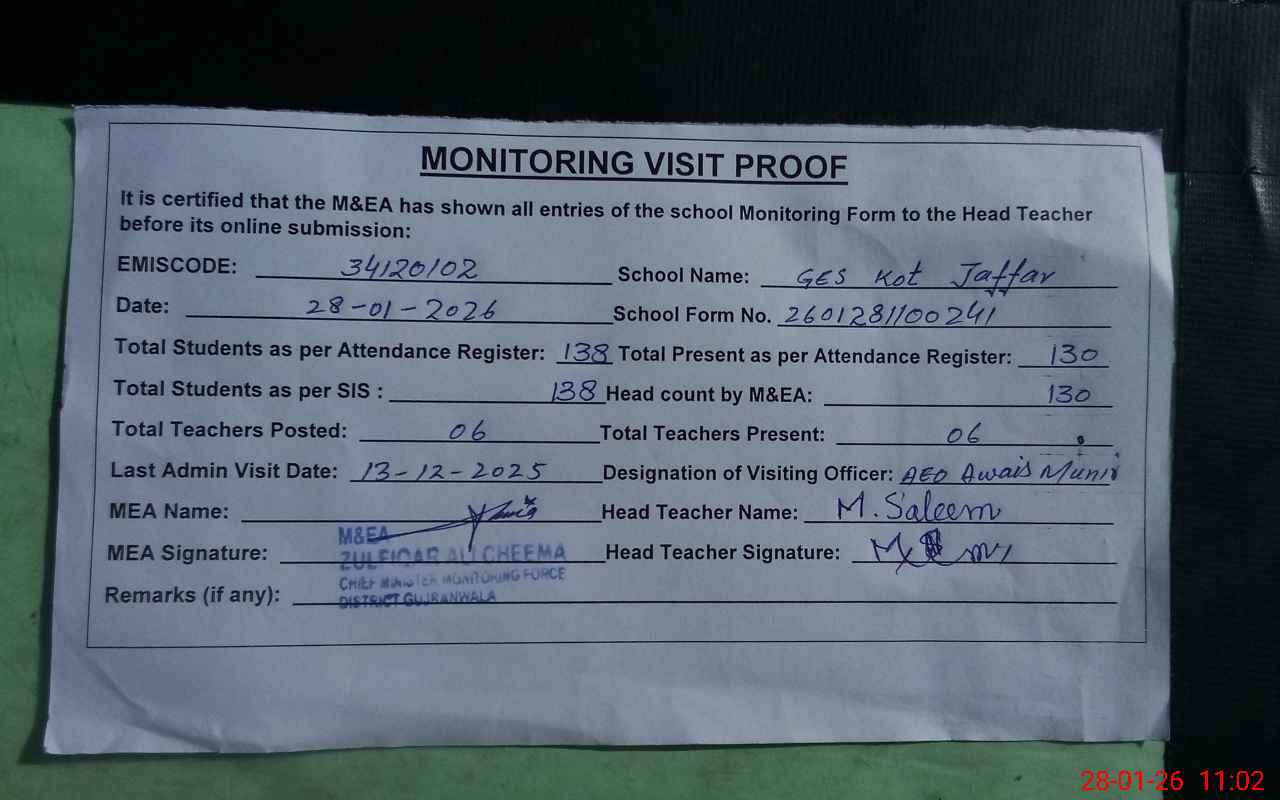 | EMIS Code: 34120102 | Name of School: GES KOT JAFFAR | |||