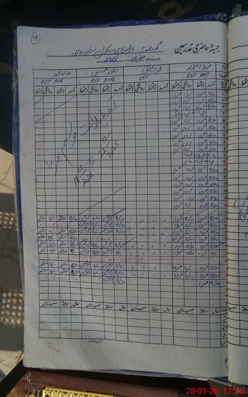 | Remarks (Use Separate Page if Required): Teacher Khalid Mehmood is on casual leave but leave is still not approved by any competent authority FTF and NSB data are not completed | |||||