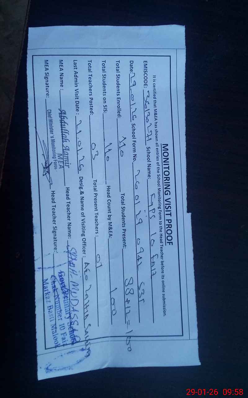| EMIS Code: 36130271 | Name of School: GPS CHAK NO. 10-FAIZ P/O TARAGARH | |||