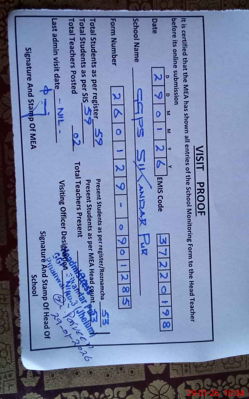 | EMIS Code: 37220198 | Name of School: GGPS SIKANDAR PUR | |||