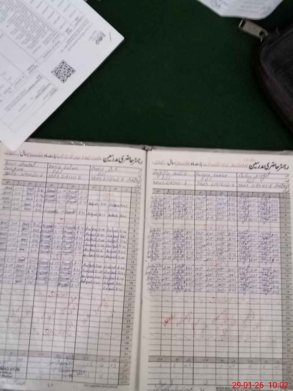| CNIC | Full Name | Designation | R/C | Absence During Last Calender Month |
