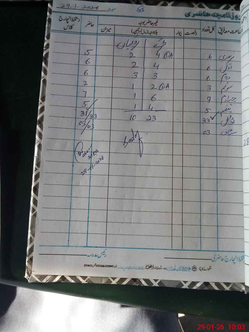 | Total Students Present | 0 | 0 | 6 | 6 | 2 | 7 | 5 | 31 | ||||||||