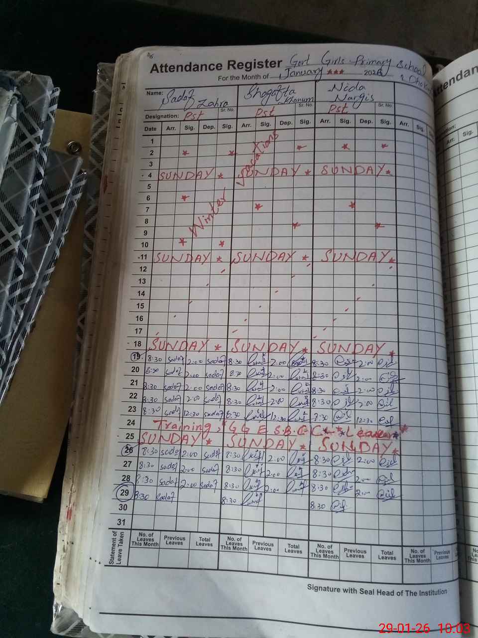 | Leave | Duty | Absent | Maternity | Medical | Ex- Pak |