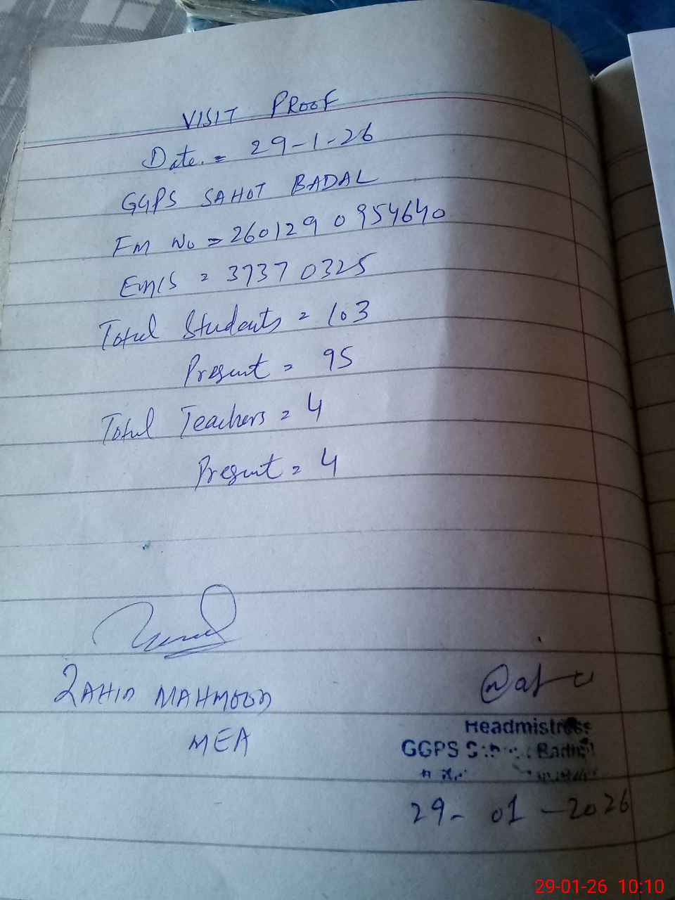 | EMIS Code: 37370325 | Name of School: GGPS SAHOT BADAL | |||