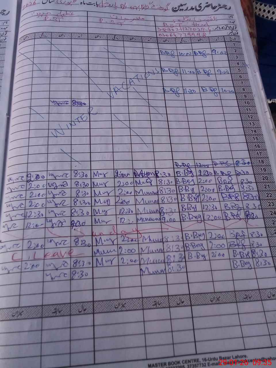 | Leave | Duty | Absent | Maternity | Medical | Ex- Pak |