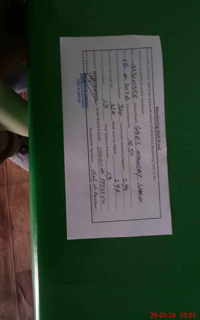 | EMIS Code: 32320358 | Name of School: GGES MANDAY SHAH | |||