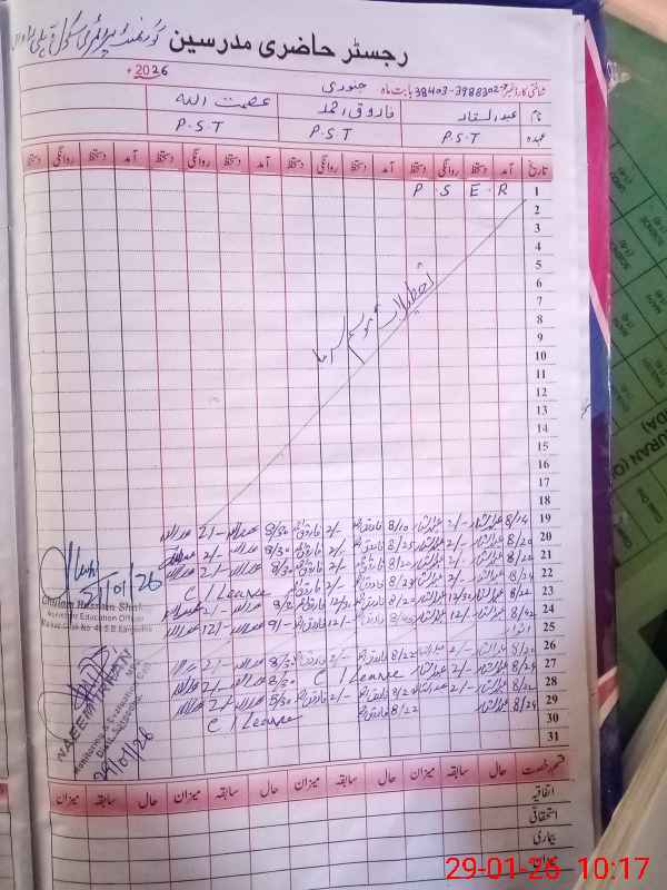 | Name: Ab**** Sa**** Designation: (School Headmaster's/Headmistress's) PST Phone/Cell Number: 03**** |