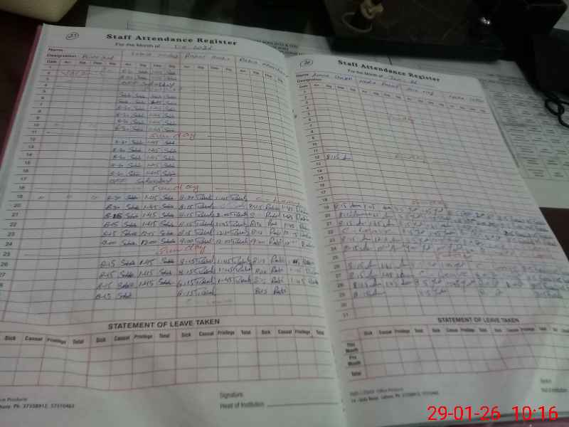 | CNIC | Full Name | Designation | R/C | Absence During Last Calender Month |