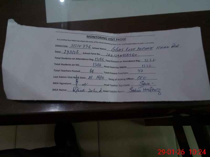 | EMIS Code: 31310796 | Name of School: GGHS LOW INCOME SCHEME KHANPUR | |||