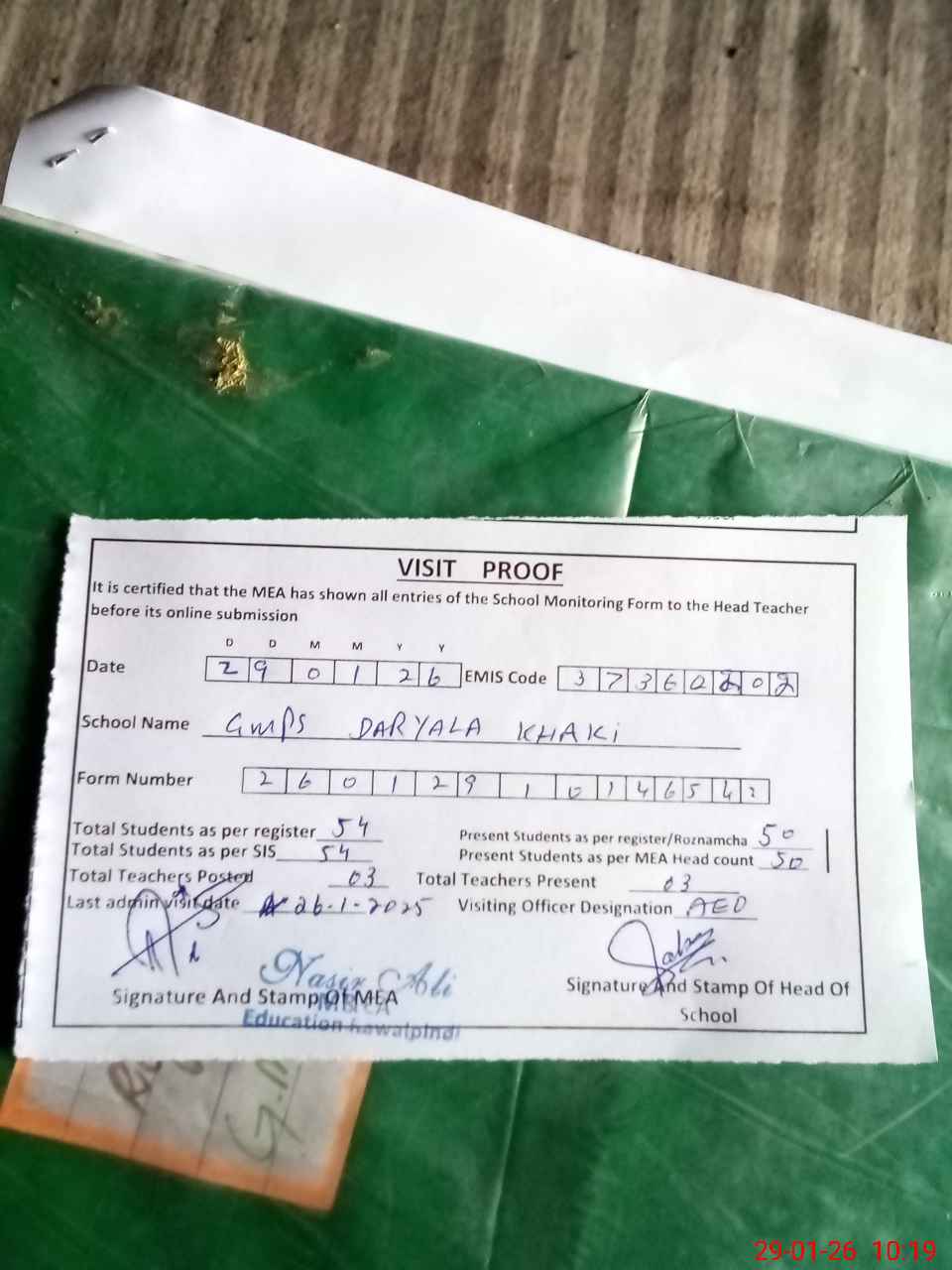 | EMIS Code: 37360202 | Name of School: GMPS DARYALA KHAKI | |||