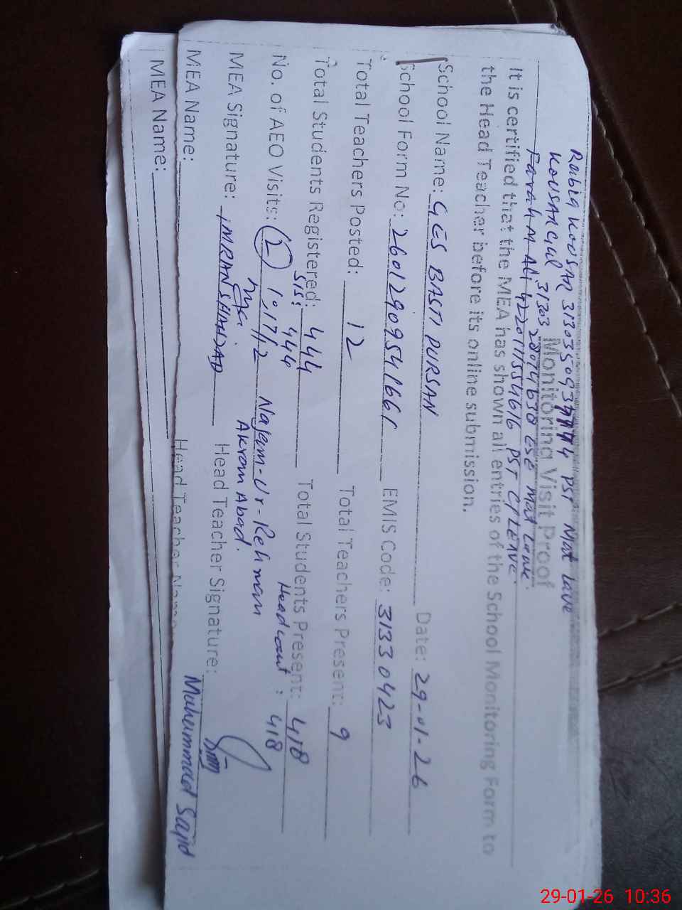 | EMIS Code: 31330425 | Name of School: GES BASTI PURSAN | |||