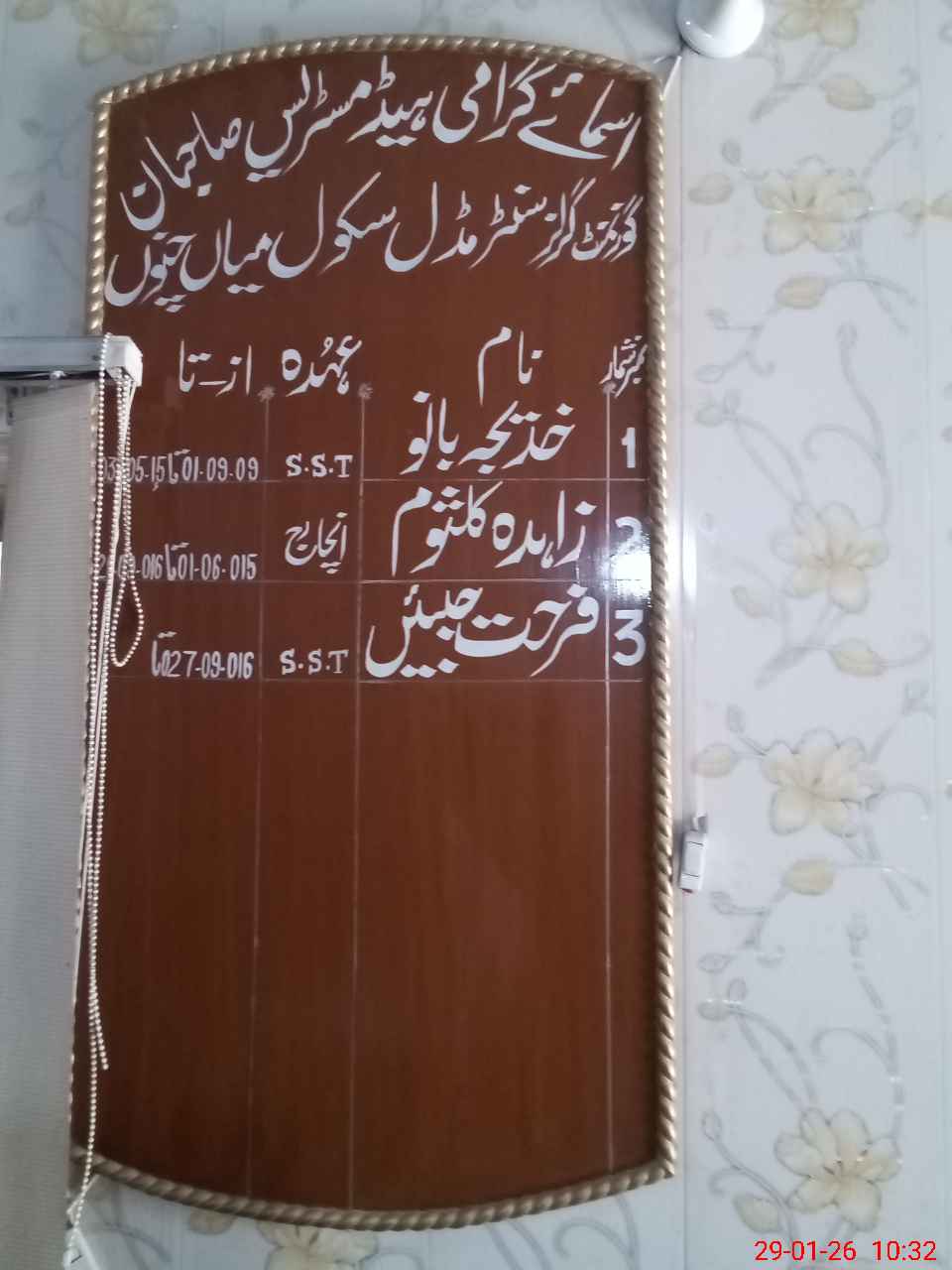 | Name: FA**** JA**** Designation: (School Headmaster's/Headmistress's) SST ( GENERAL) Phone/Cell Number: 03**** |