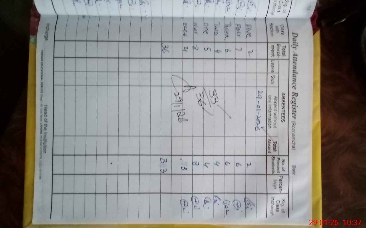 | Attendance Register | Head Teacher | MEA with School | Visit Proof |