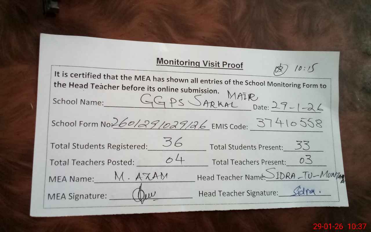 | EMIS Code: 37410558 | Name of School: GGPS SARKAL MAIR | |||