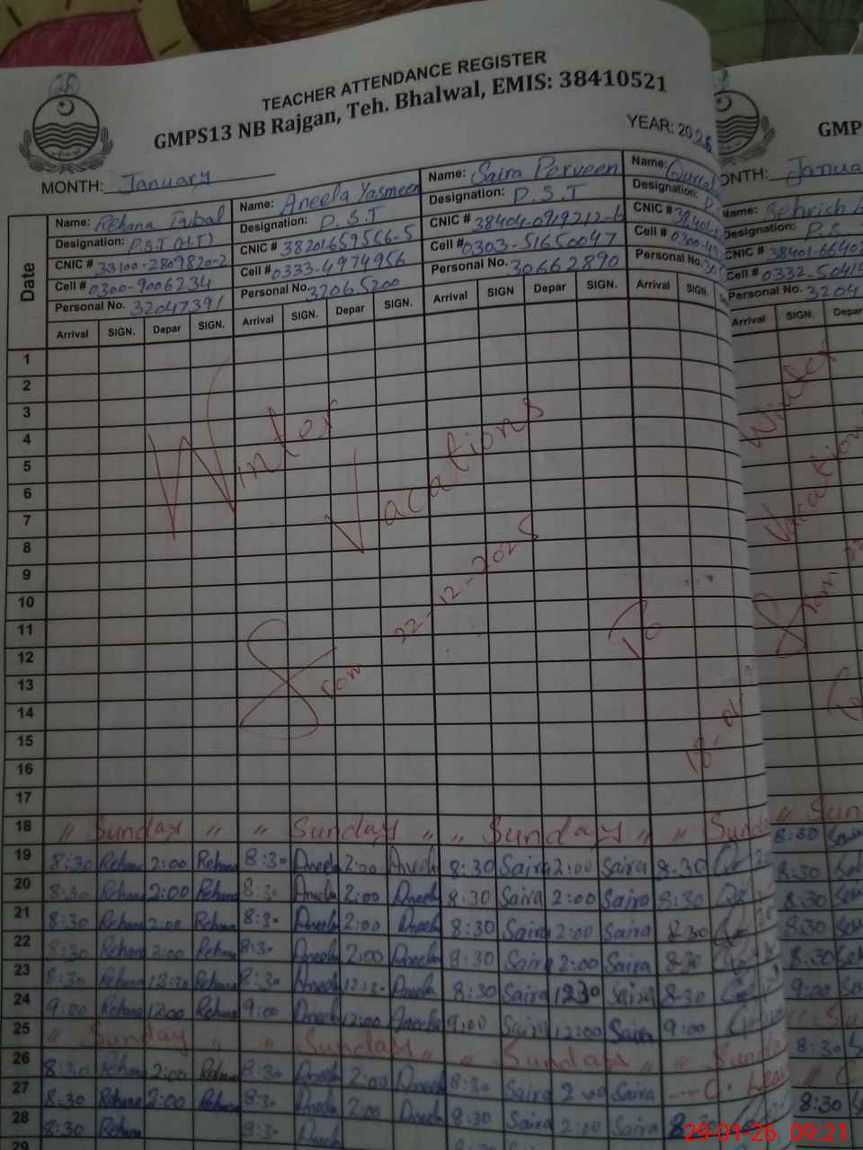 | Name: Re**** Iq**** Designation: (School Headmaster's/Headmistress's) PST Phone/Cell Number: 03**** |