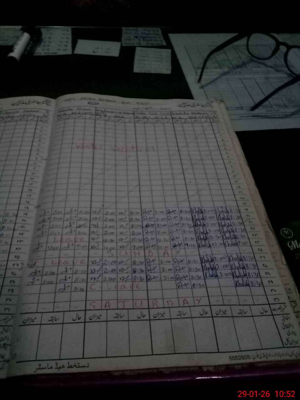 | Leave | Duty | Absent | Maternity | Medical | Ex- Pak |